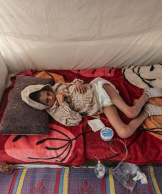 الطفلة رنين جندية مصابة بحروق في جسدها جراء غارة جوية إسرائيلية استهدفت خيمة قرب مخيمها في خان يونس، وتحتاج إلى استكمال العلاج خارج قطاع غزة.مدينة غزة، 1 فبراير/شباط 2026. صورة: مطر الزاق.