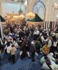 تجمّع فلسطينيون في الحرم الإبراهيمي بالخليل، الضفة الغربية، لإحياء ذكرى الإسراء والمعراج، رغم القيود الإسرائيلية وحظر الصلاة داخل المسجد، في 17 يناير/كانون الثاني 2026. (صورة: مأمون وزواز)