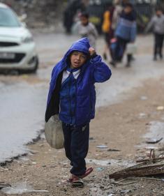 تواصل العائلات الفلسطينية النازحة المقيمة في مخيم الزوايدة وسط قطاع غزة حياتها اليومية في ظل ظروف قاسية داخل خيام متهالكة لا توفر أي حماية أو دفء من برد الشتاء القارس، 18 يناير/كانون الثاني 2026. صورة: رمزي أبو عامر