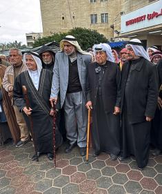 التجمع الوطني للقبائل والعشائر والعائلات الفلسطينية ينظم وقفة في دير البلح دعمًا للجنة الوطنية الفلسطينية لإدارة قطاع غزة، ١٨ يناير/كانون ثاني ٢٠٢٦. صورة: أحمد إبراهيم