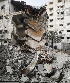يتفقد فلسطينيون مبنىً متضرراً ومدمراً إلى حد كبير بعد استهدافه من قبل الجيش الإسرائيلي في حي النصر بمدينة غزة، في 31 يناير/كانون الثاني 2026. (صورة: عمر أشتوي)