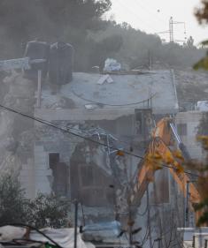 ردود فعل فلسطينية بعد أن هدمت القوات الإسرائيلية منزلاً فلسطينياً من ثلاثة طوابق بحجة عدم وجود رخصة بناء، في بلدة ترقوميا ، شمال غرب الخليل، بالضفة الغربية، في الأول من فبراير/شباط 2026. (صورة: مأمون وزواز)