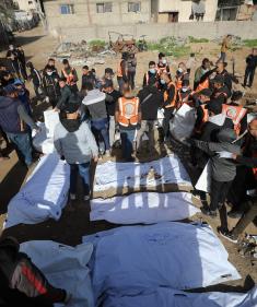 تُنقل جثث الضحايا إلى مستشفى الشفاء بعد هجوم إسرائيلي على مركز شرطة الشيخ رضوان غرب غزة، رغم وقف إطلاق النار، 31 يناير/كانون الثاني 2026.. (صورة: عمر أشتوي)