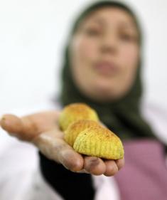سيدات فلسطينيات يجهزن حلوى المعمول قبل عيد الفطر في مدينة الخليل