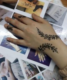 نساء فلسطينيات ينقشن الحنة استعدادا لعيد الفطر في مدينة غزة