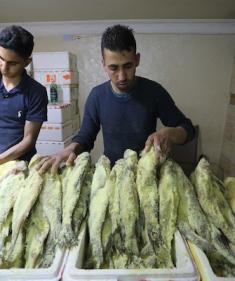 تجهيز السمك المُملح (الفسيخ) لعرضه بالأسواق المحلية قبيل عيد الفطر في مدينة غزة