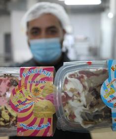 عشرات العمال الفلسطينيين في مصنع العريس لإنتاج المثلجات في خان يونس جنوب قطاع غزة