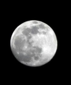 القمر يظهر فوق مدينة دير البلح وسط قطاع غزة خلال منتصف شهر رمضان المبارك
