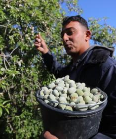 موسم حصاد اللوز الأخضر في قطاع غزة