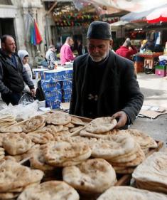 فلسطينيون يشترون الخبز وسط ارتفاع اسعار الطحين بسبب موجة الغلاء العالمية في مدينة نابلس.