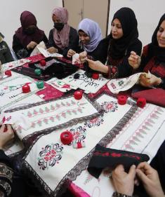 سيدات فلسطينيات يبدعن بتعلم فنون التطريز في دير البلح وسط القطاع