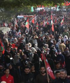 أنصار الجبهة الشعبية لتحرير فلسطين يشاركون في مسيرة بمناسبة الذكرى 54 لتأسيسها في مدينة غزة