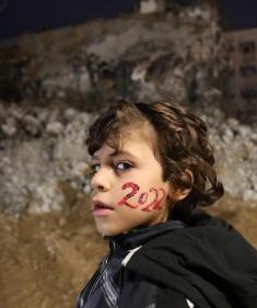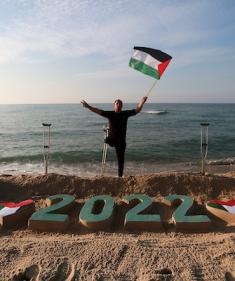 الفنان الفلسطيني الجريح محمد طوطح يرسم على الرمل "2022" قبل أيام من العام الجديد