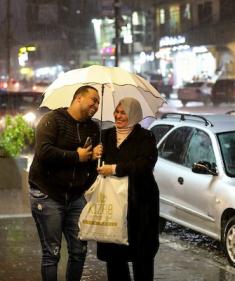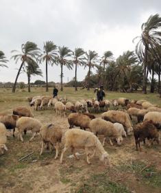 رعاة أغنام فلسطينيون يرعون أغنام داخل حقل في مدينة الزهراء وسط قطاع غزة خلال طقس عاصف