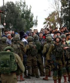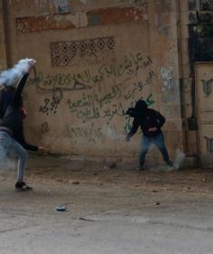 مواجهات بين شباب فلسطينيون وقوات الاحتلال الاسرائيلي على مدخل بلدة برقة شمال غرب نابلس خلال مسيرة دعا لها المستوطنين الى مستوطنة حومش المخلاه.