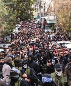 فلسطينيون يشيعون جثمان الشهيد محمد عباس في مخيم الأمعري في رام الله