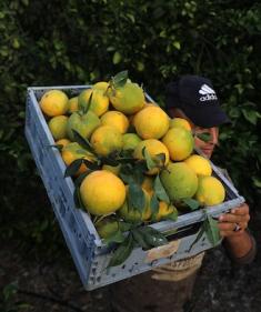 مزارعون فلسطينيون يحصدون البرتقال في بيت لاهيا شمال قطاع غزة