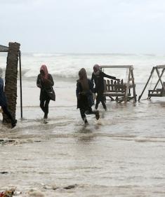 أجواء ماطرة في مدينة غزة خلال منخفض جوي