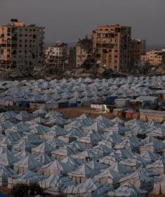 نازحون فلسطينيون وسط ملاجئ مؤقتة شمال مدينة غزة، 21 نوفمبر/تشرين الثاني 2025، تصوير: عمر أشتوي