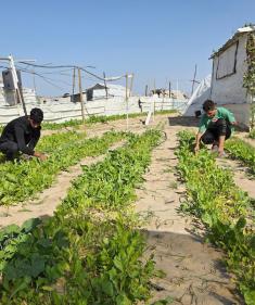مزارعون فلسطينيون يحرثون ويزرعون أراضيهم شرق خان يونس جنوب قطاع غزة، بالقرب من خط التماس الأصفر.1 ديسمبر/كانون الأول 2025. تصوير: طارق محمد