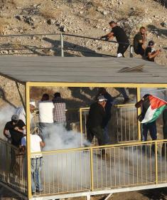 الأغوار - جنود الاحتلال يقمعون مسيرة سلمية ضد التوسع الاستيطاني في منطقة عين الحلوة بالأغوار الشمالية: تصوير - أيمن نوباني
