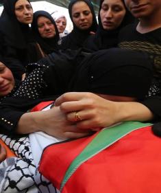 تشييع جثمان الشهيد الشاب شوكت خالد عوض (20 عاما) في بلدة بيت أمر شمال الخليل: تصوير - مشهور وحواح