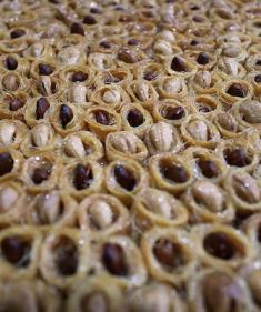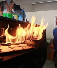 الشاب الفلسطيني أحمد علي يصنع فطير مشلتت في متجره بمخيم الشاطئ غرب غزة - تصوير: عمر اشطاوي