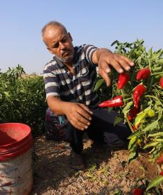 موسم حصاد الفلفل الأحمر في غزة أقل من المتوقع والأسعار لا ترضي المزارعين بسبب الوضع الاقتصادي الصعب. تصوير : أشرف عمرة