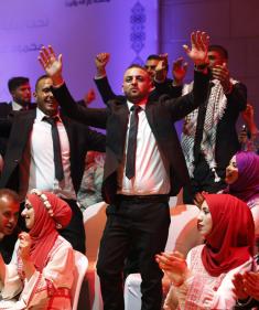 رام الله - جانب من العرس الجماعي الذي اقامته محافظة رام الله والبيرة برعاية الرئيس أبومازن. تصوير: مصطفى ابو دية