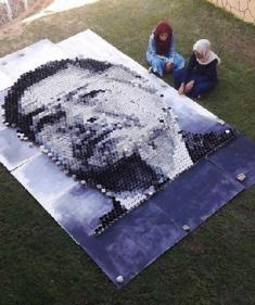 لوحة فنية من كاسات القهوة تُجسد الراحل "زويل"