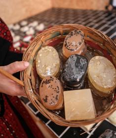 الزوجان سلامة وآلاء بدوان يفتتحان مشروعا لإنتاج الصابون الطبيعي من نبتة صبار "الألوفيرا" التي تنتشر داخل قوارير بلاستيكية على سطح منزلهم في مدينة دير البلح وسط قطاع غزة