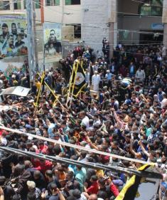 جماهير نابلس تشيع جثامين الشهداء الثلاثة