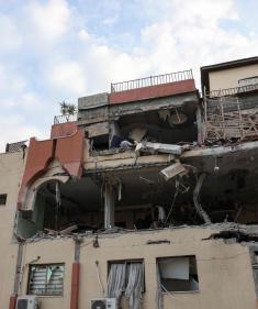 آثار القصف الإسرائيلي لشقة سكينة على مدينة غزة .. تصوير (الفرنسية)