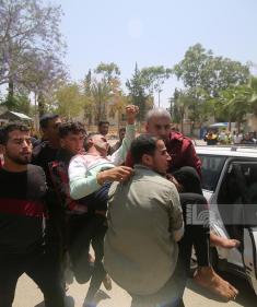 مواطنون ينقلون الجرحى خلال القصف الاسرائيلي على مدينة خان يونس جنوب قطاع غزة