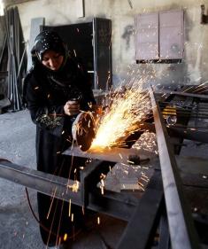 الفلسطينية رنيم الصفدي تعمل في ورشة للحدادة في عوريف قرب نابلس تصوير : نضال اشتية