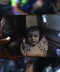 تشييع جثمان الطفل الشهيد الرضيع علي دوابشة الذي قتله المستوطنون حرقافي قرية دوما