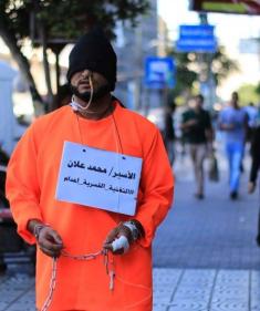 شاب من غزة يتضامن مع الاسير علان على طريقته الخاصة/ عدسة: محمد زرندح