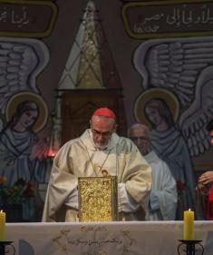 بطريرك اللاتين في القدس الكاردينال بييرباتيستا بيتسابالا يترأس قداس عيد الميلاد في غزة يوم الأحد 21 ديسمبر/كانون الأول 2025.تصوير: عمر أشتوي