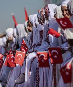 حفل زفاف جماعي لنحو 200 عريس وعروس، تحت عنوان "نحب الحياة رغم الإبادة الجماعية"، نظمته مؤسسة "الرباط" التركية في منطقة الزوايدة، وسط قطاع غزة، 18ديسمبر/كانون الأول 2025. تصوير: عمر أشتوي