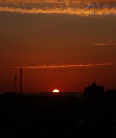 لحظة غروب الشمس على شاطئ مدينة غزة/عدسة:محمود عيسى