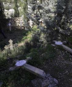 مجهولون يقوقون بتدنيس مقبره دير بيت جمال الواقع جوار بيت شيمش الى الغرب من القدس/تصوير: عفيف عميرة