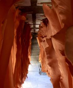 الخليل - دباغة الجلود وصناعتها مهنة تاريخية تتميز بها مدينة الخليل . تصوير: سمر بدر