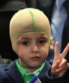 الطفل احمد دوابشة خلال حفل وداع في نابلس قبل مغادرته إلى اسبانيا للقاء نجم ريال مدريد كريستيانو رونالدو/ تصوير: ايمن نوباني