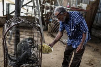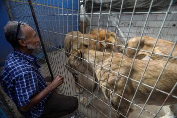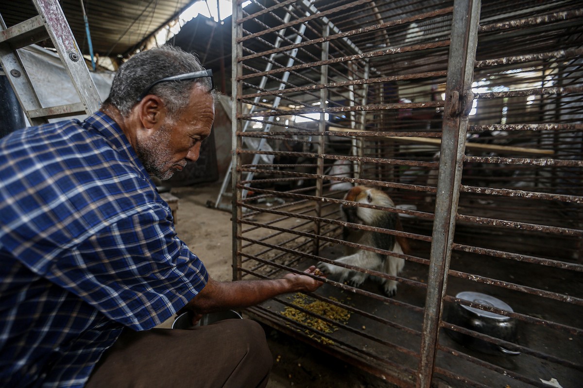 محمود جمعة حارس حديقة حيوانات فلسطيني من قطاع غزة يُكافح لرعاية أكثر من 100 حيوان وسط عمليات تهجير قسري متكررة .. تصوير: عمر اشتوي
