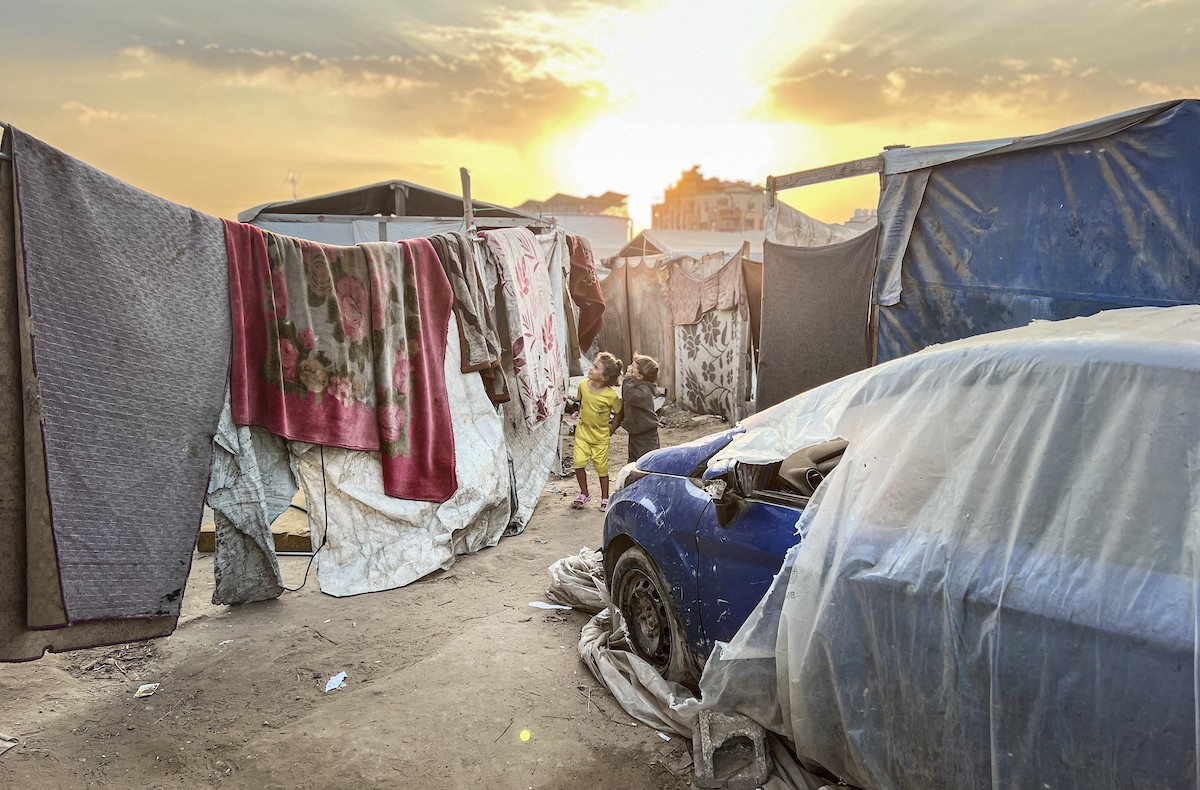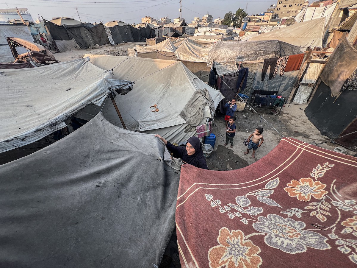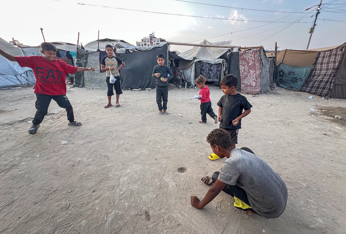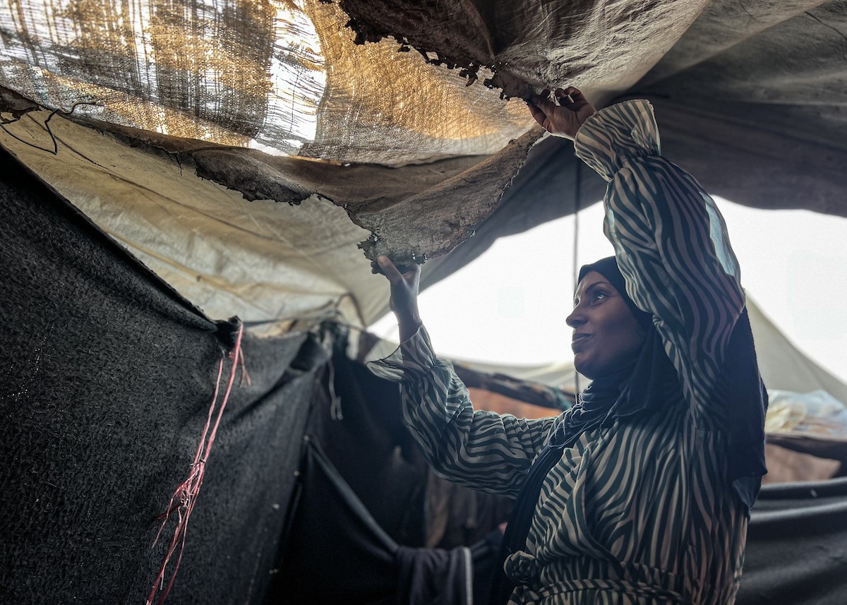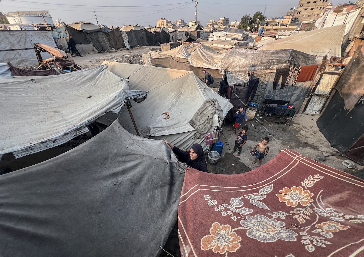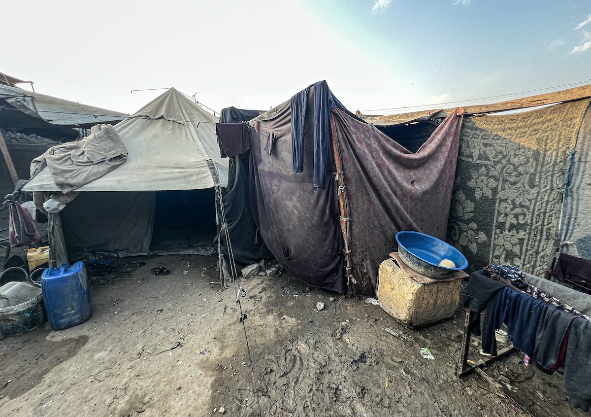 يُكافح النازحون الفلسطينيون لمواجهة ظروف معيشية صعبة مع اقتراب فصل الشتاء، مخيم النصيرات وسط قطاع غزة، 5 نوفمبر 2025، تصوير: بلال أبو عامر