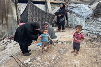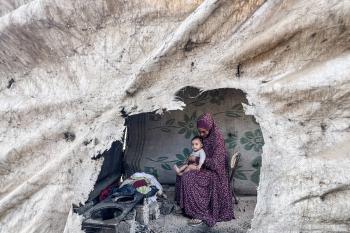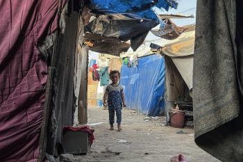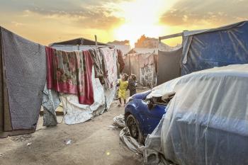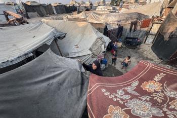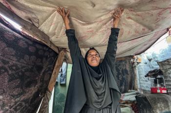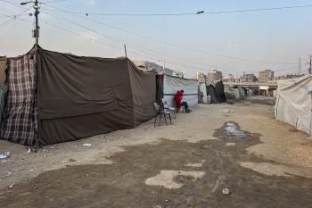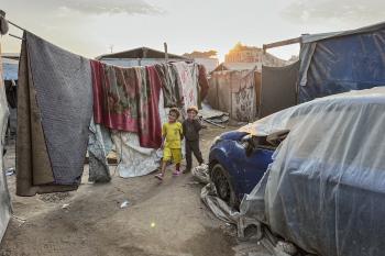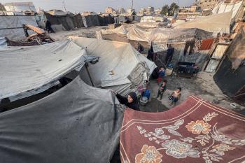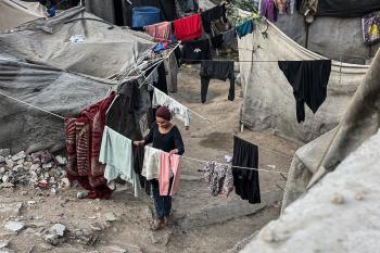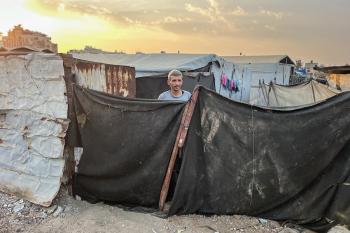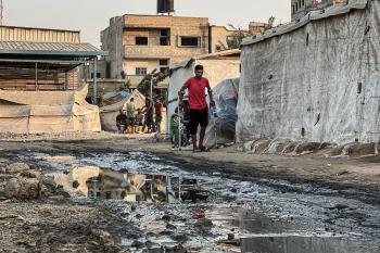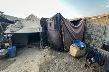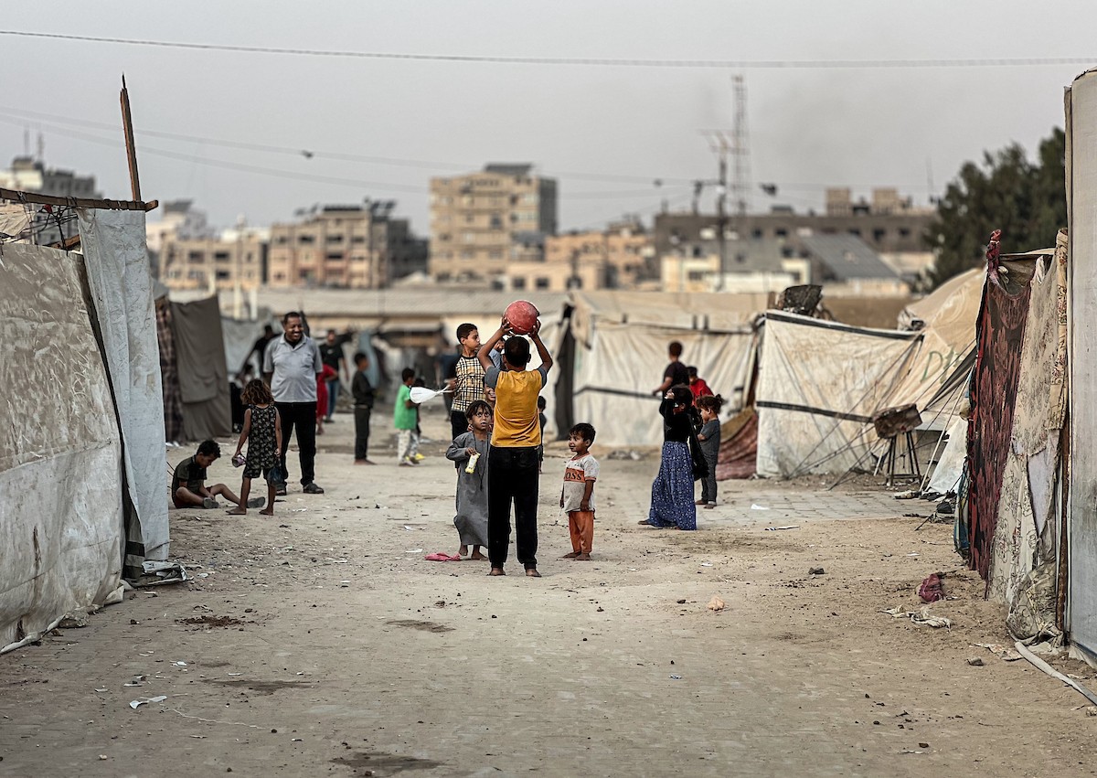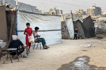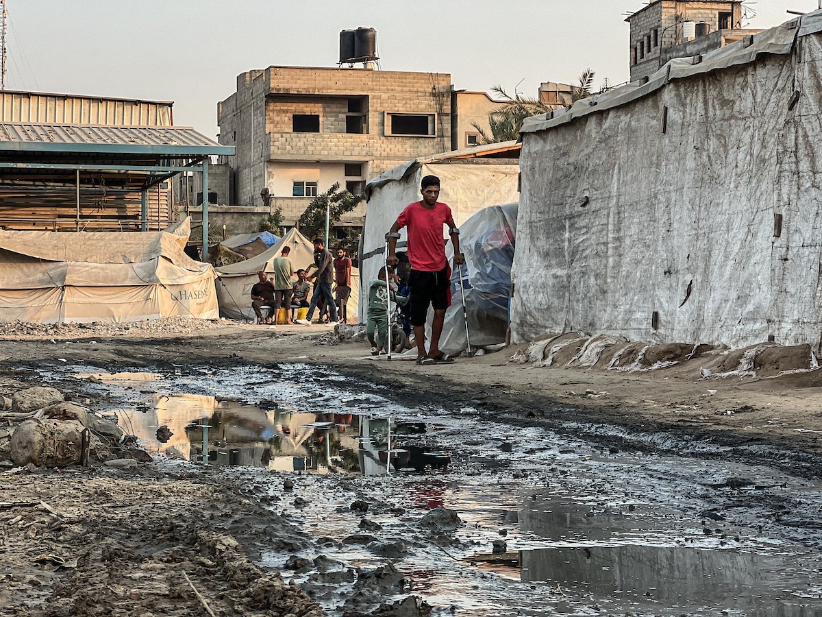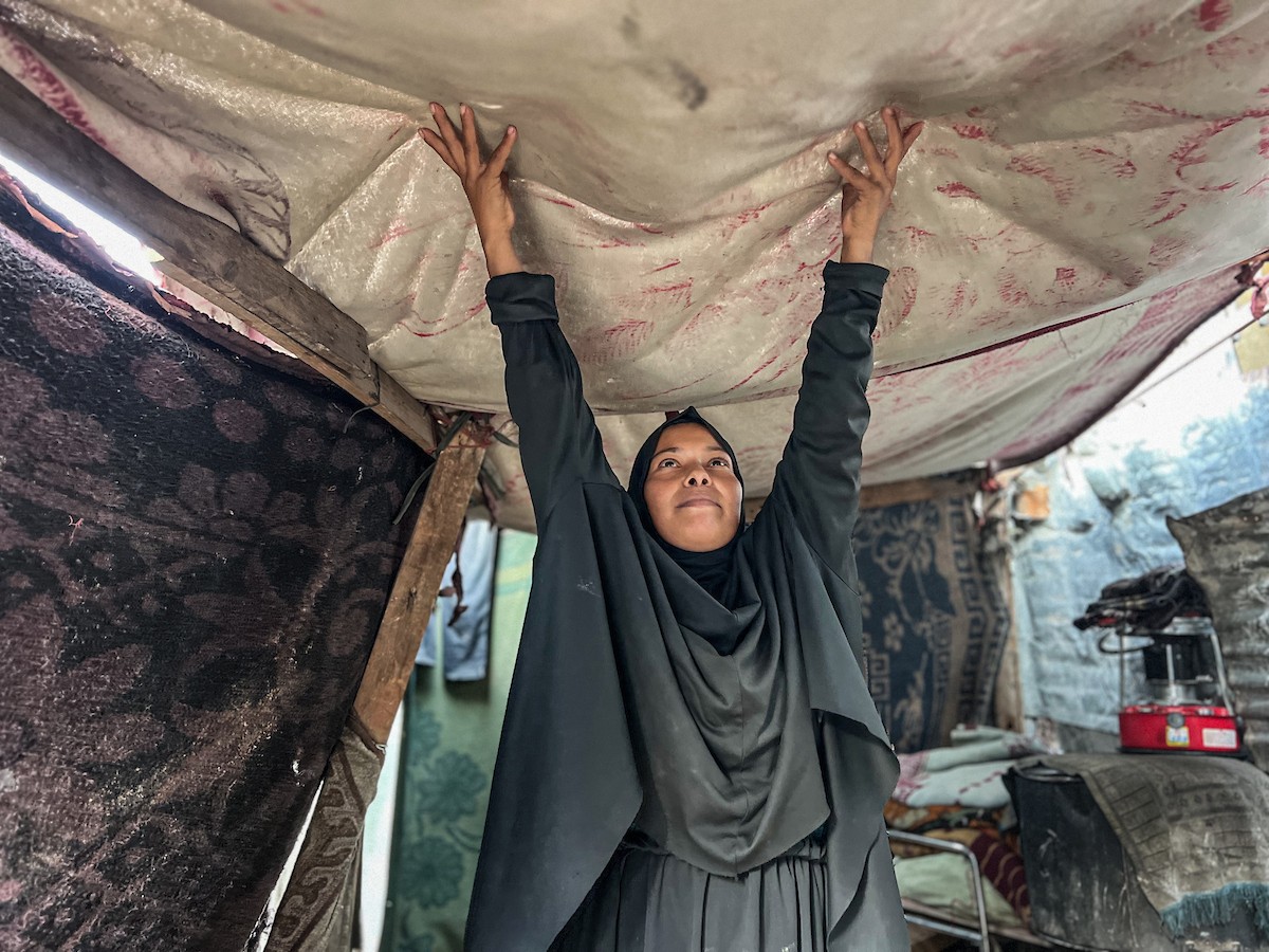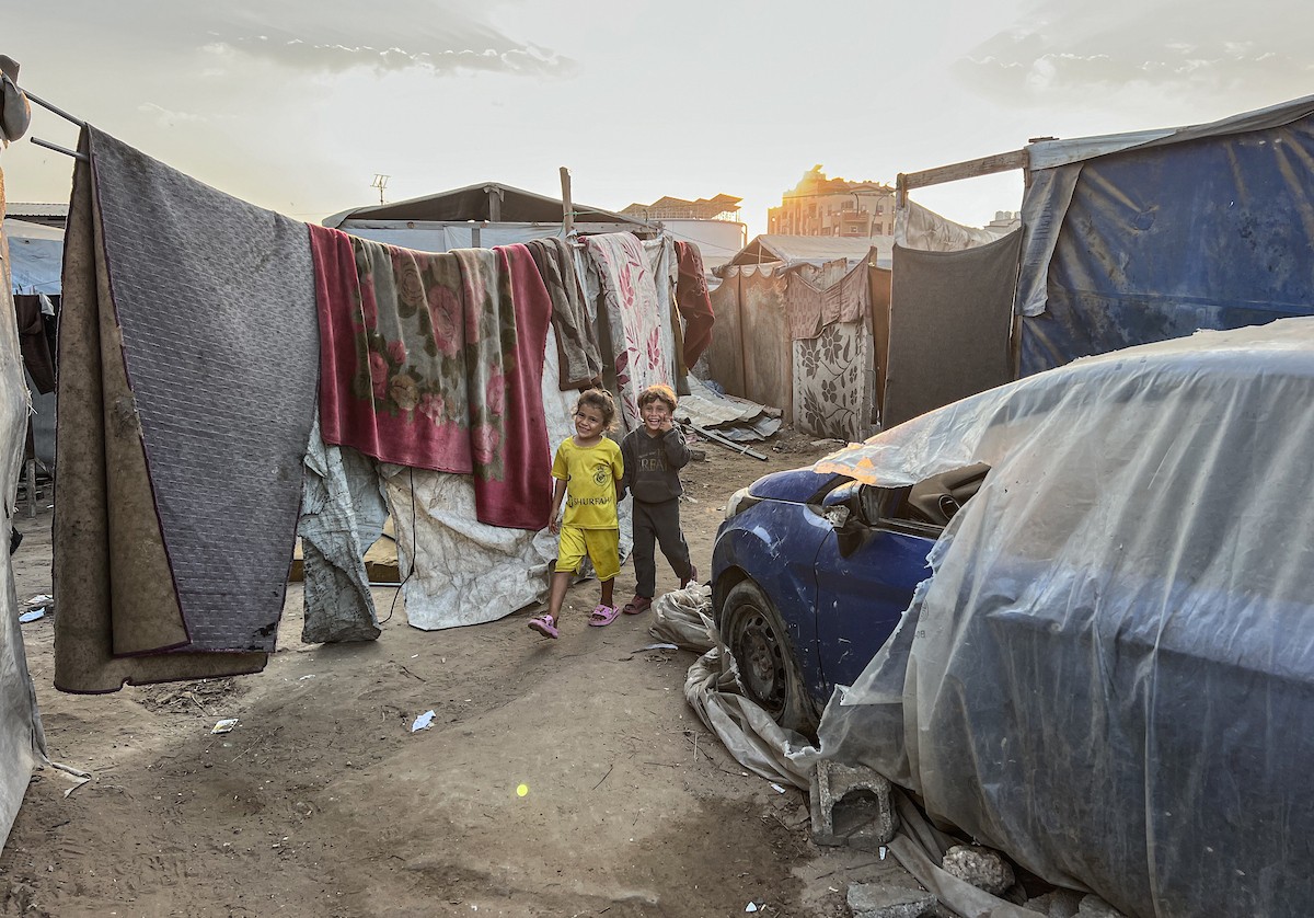 يُكافح النازحون الفلسطينيون لمواجهة ظروف معيشية صعبة مع اقتراب فصل الشتاء، مخيم النصيرات وسط قطاع غزة، 5 نوفمبر 2025، تصوير: بلال أبو عامر