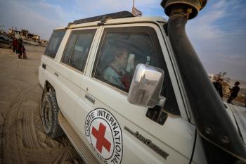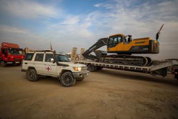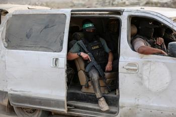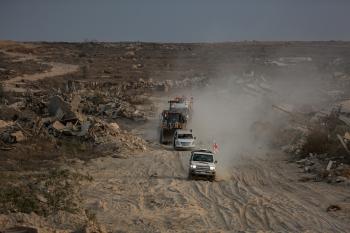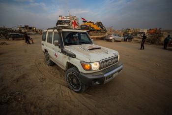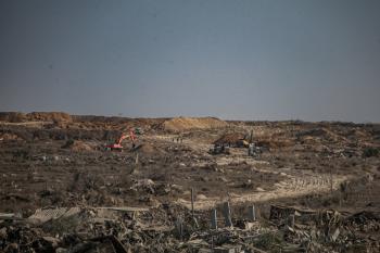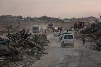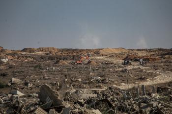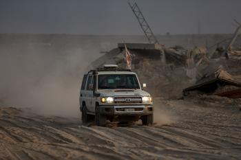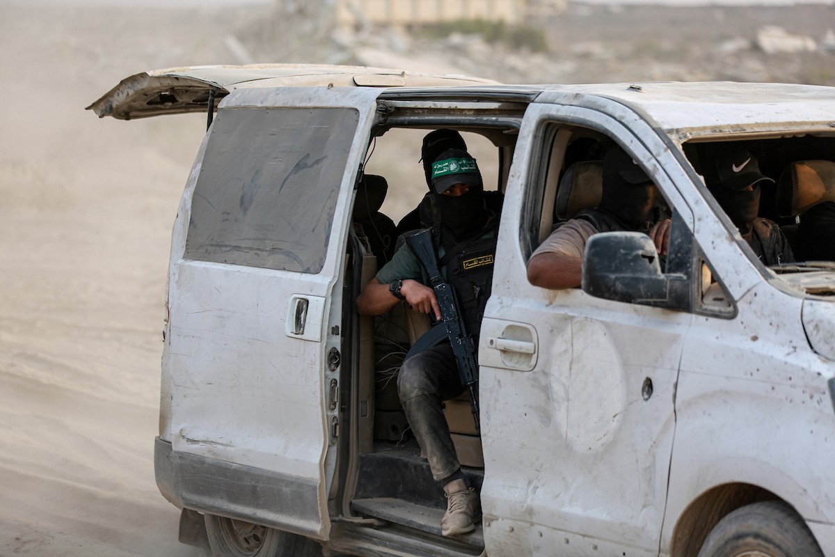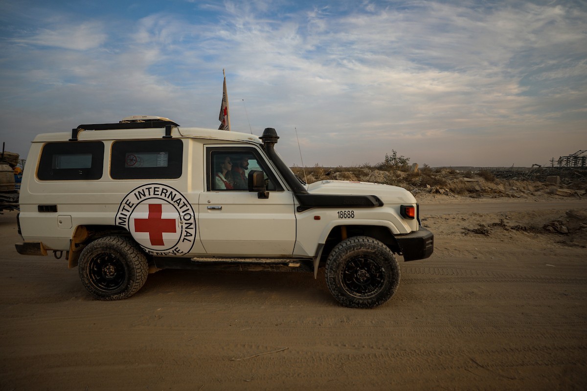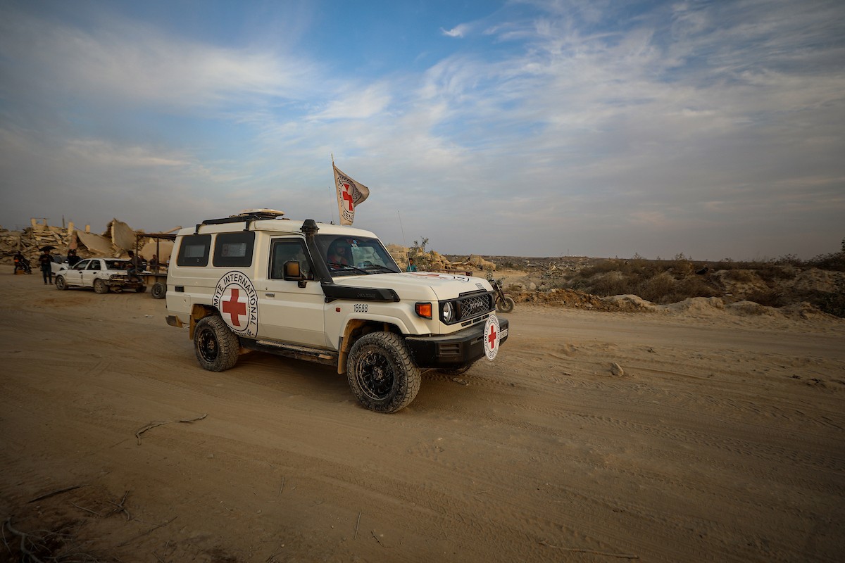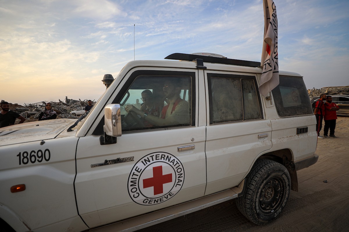 عمليات البحث لاستعادة جثث الرهائن الإسرائيليين، يجريها أعضاء من كتائب القسام، ومسؤولون من اللجنة الدولية للصليب الأحمر في حي الزيتون بقطاع غزة. تصوير: عمر أشتوي
