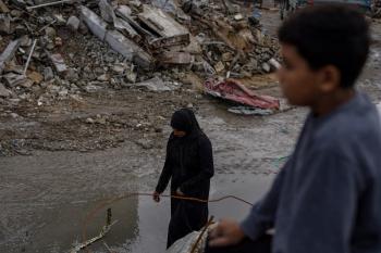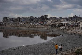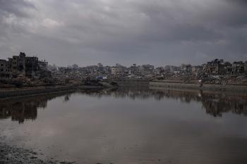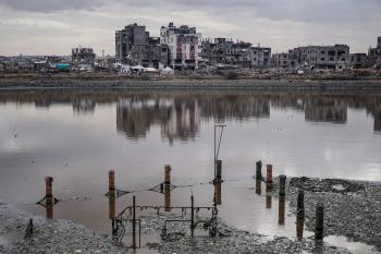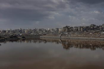 وفد من الأمم المتحدة يتفقد بركة الشيخ رضوان عقب تحذيرات من حدوث فيضانات شتوية، 15 نوفمبر/تشرين الثاني 2025. تصوير: عمر أشتوي