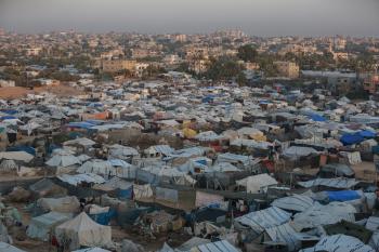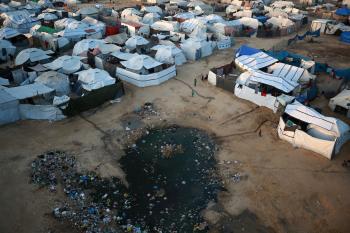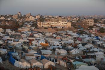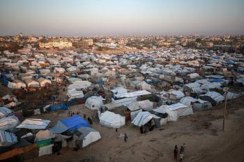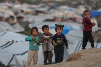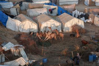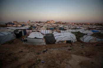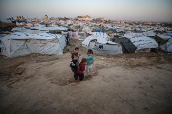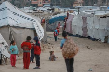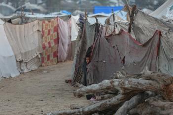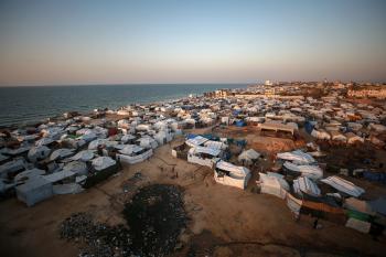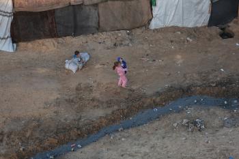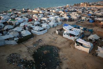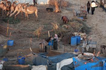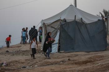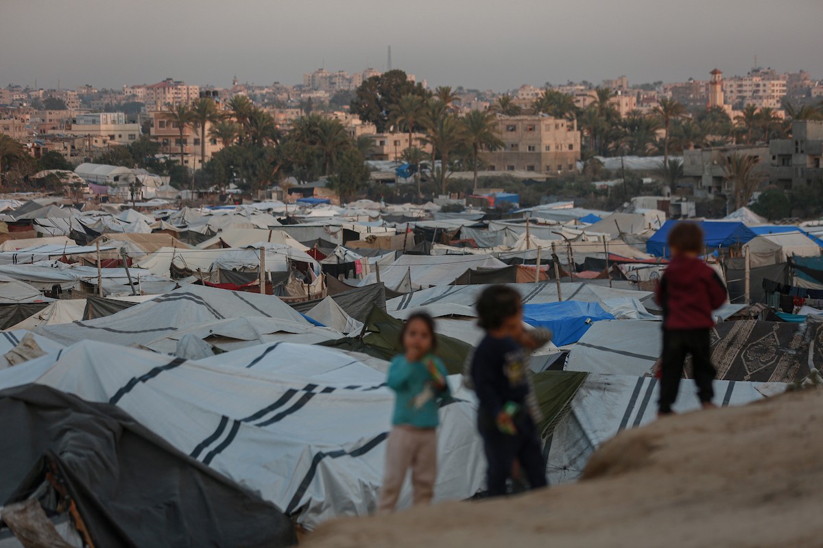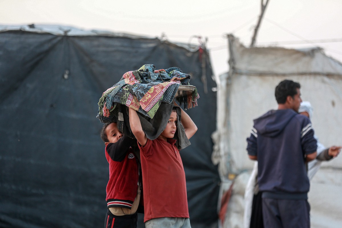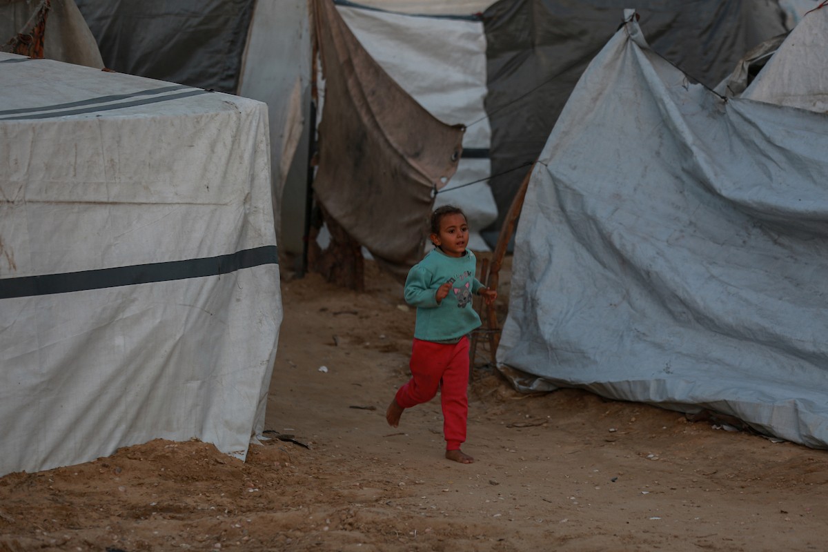 تواجه الأسر الفلسطينية النازحة بالقرب من مدينة الزوايدة وسط قطاع غزة ظروفًا معيشية صعبة، 18 نوفمبر 2025. تصوير: عمر أشتوي
