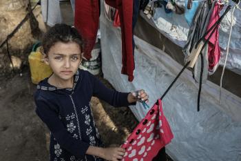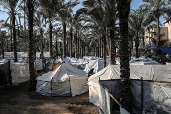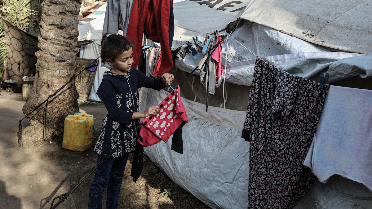 يواجه النازحون الفلسطينيون جراء الهجوم الإسرائيلي المستمر منذ عامين على قطاع غزة ظروفًا إنسانيةً مأساوية